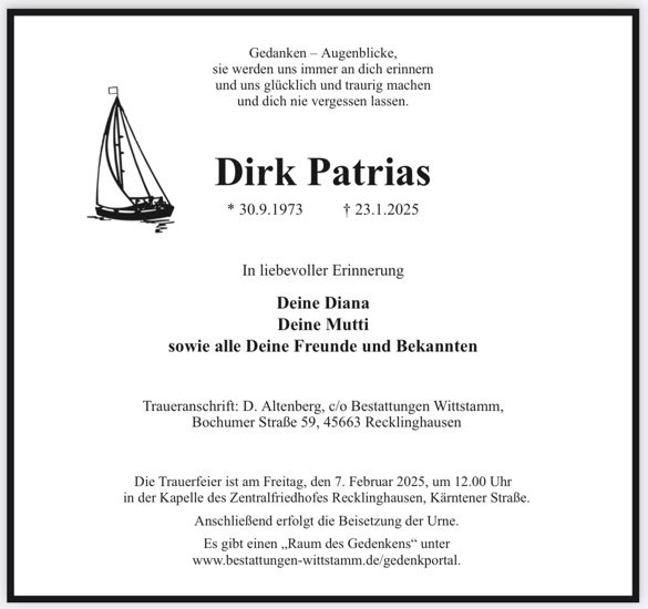Deiner Familie wünschen wir für diese schwierige Zeit viel Kraft und Zuversicht.